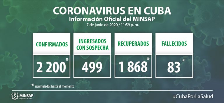 Cuba reporta 9 nuevos casos positivos a la COVID-19, ningún fallecido por noveno día consecutivo y 6 altas médicas