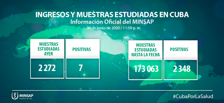 Para COVID-19 se estudiaron 2 mil 272 muestras, resultando siete muestras positivas. El país acumula 173 mil 063 muestras realizadas y 2 mil 348 positivas (1,4%). Por tanto, al cierre del día de ayer se confirmaron siete nuevos casos, para un acumulado de 2 mil 348 en el país.