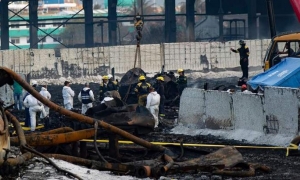 MATANZAS.-El equipo multidisciplinario de especialistas continuó este lunes las labores para localizar los restos de los cuerpos desaparecidos durante el incendio ocurrido en la Base de Supertanqueros.