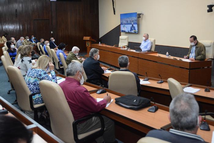 En esta reunión en el Palacio de la Revolución se informó sobre cómo marchan los estudios clínicos con el candidato vacunal Mambisa, que se administra por la vía nasal.