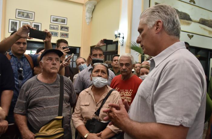 El Primer Secretario del Comité Central del Partido y Presidente de la República, Miguel Díaz-Canel Bermúdez, visitó este domingo la instalación hotelera que acoge a los miembros de 11 familias cuyos hijos y padres trabajaban en las labores de control y extinción del incendio, y que se reportan desaparecidos desde la explosión ocurrida en la madrugada del sábado, en el segundo tanque siniestrado.