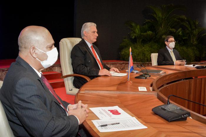 Comentó igualmente acerca de las acciones que ha realizado Cuba para sostener la vitalidad de sus principales servicios, a pesar de la genocida política que lleva a cabo el Gobierno norteamericano; la atención que se brinda a la población contagiada con la COVID-19 y sospechosa de portar la enfermedad; la habilitación en tiempo record de más de una veintena de laboratorios de biología molecular; el diseño y elaboración de prototipos nacionales de ventiladores pulmonares y kits diagnóstico; así como el desarrollo de cinco candidatos vacunales contra el nuevo coronavirus.