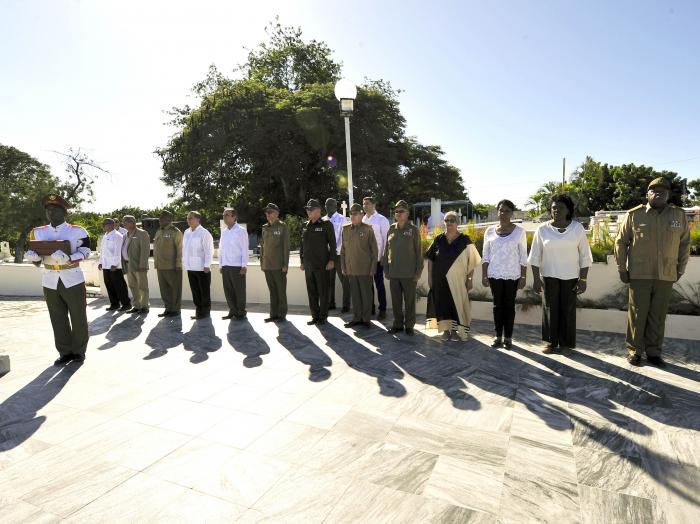 Temprano en la mañana, en un acto sencillo, y a la vez conmovedor, combatientes de la unidad de ceremonia de las Fuerzas Armadas Revolucionarias (FAR), acompañados por la banda de música del Ejército Oriental, colocaron ofrendas florales del General de Ejército y del Primer Secretario del Partido y Presidente de la República, Miguel Díaz-Canel Bermúdez; y depositaron la urna cineraria. Custodiando la bóveda también sobresalían las ofrendas de los familiares, de la Asamblea Nacional del Poder Popular, y de la Asociación de Combatientes de la Revolución cubana.