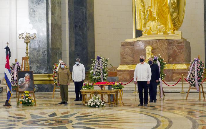 A las ocho de la mañana, el Primer Secretario del Comité Central del Partido Comunista de Cuba, General de Ejército Raúl Castro Ruz, –amigo entrañable de Leal–, inició el postrer homenaje, en compañía del presidente de la República, Miguel Díaz-Canel Bermúdez, el presidente de la Asamblea Nacional del Poder Popular, Esteban Lazo Hernández, y el primer ministro, Manuel Marrero Cruz.