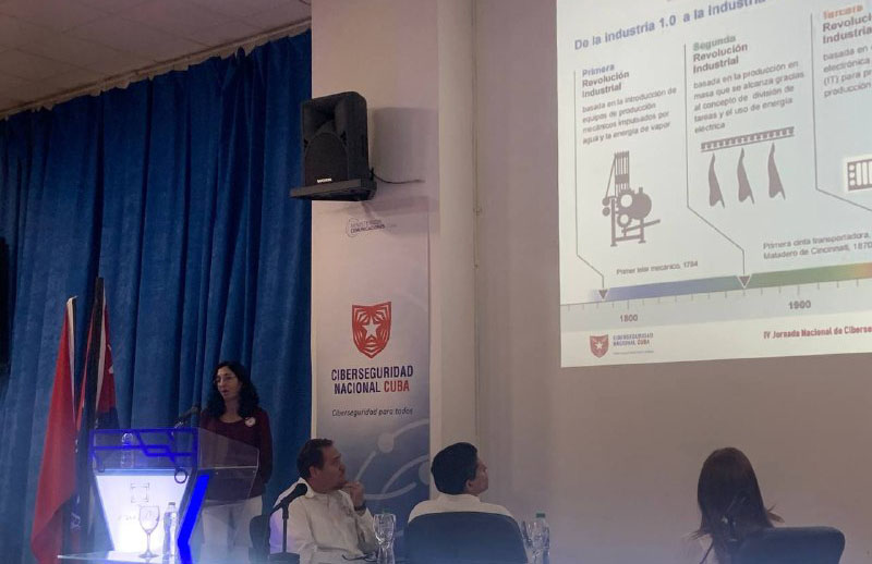 Lisset Martínez González, directora de Automática del Ministerio de Industrias (Mindus), hizo mención durante su intervención de los principales acontecimientos que han marcado el desarrollo de la industria, y cómo desde ese gremio se labora en función de disminuir los riesgos de ciberataques.