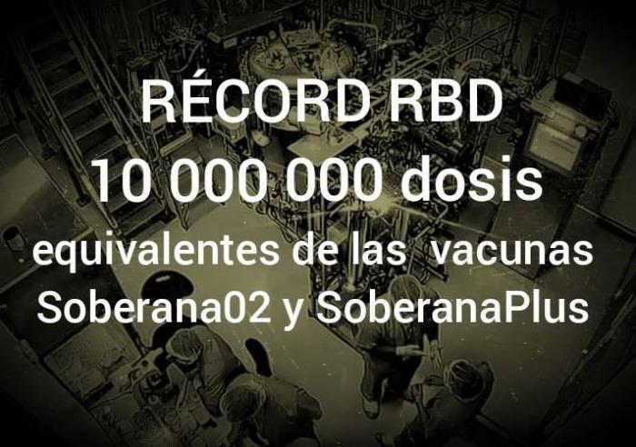 «El equipo de trabajo que produce la MPA de la RBD llega a los primeros 10 MILLONES de dosis equivalente de las Vacunas Soberana 02 y Soberana Plus. Todo esto ha ocurrido en un solo mes de trabajo intenso en la Planta de anticuerpos», subrayó el mensaje.