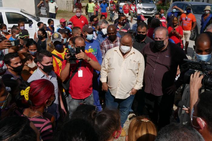 Allí, tras recorrer los salones del círculo infantil Amiguitos de Camilo y la obra en ejecución de un consultorio médico, Marrero Cruz escuchó varias inquietudes de los vecinos que desbordaron una de las arterias del barrio para ser partícipes de un diálogo franco y comprometido. «Conocemos los problemas de este barrio. Nadie quedará desamparado», afirmó.