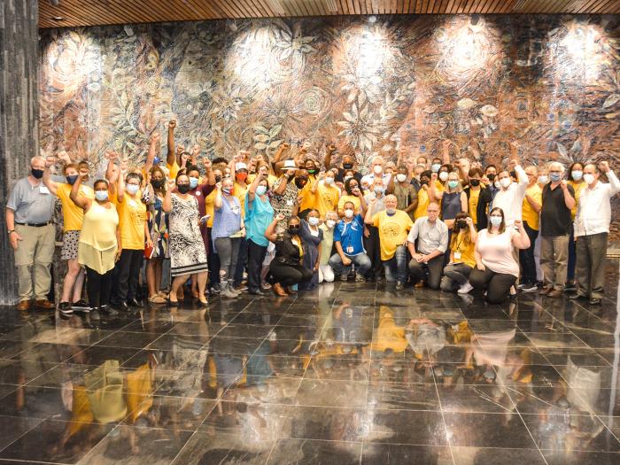 «Queridas hermanas y hermanos, nos desborda de entusiasmo, de alegría, que vuelvan a estar aquí; ustedes son her-manos con los que podemos hablar de cualquier tema», subrayó el Presidente, quien por más de dos horas conversó y respondió preguntas sobre la realidad cubana y global en un mundo donde el imperialismo se empeña en tronchar los sueños de justicia e igualdad.