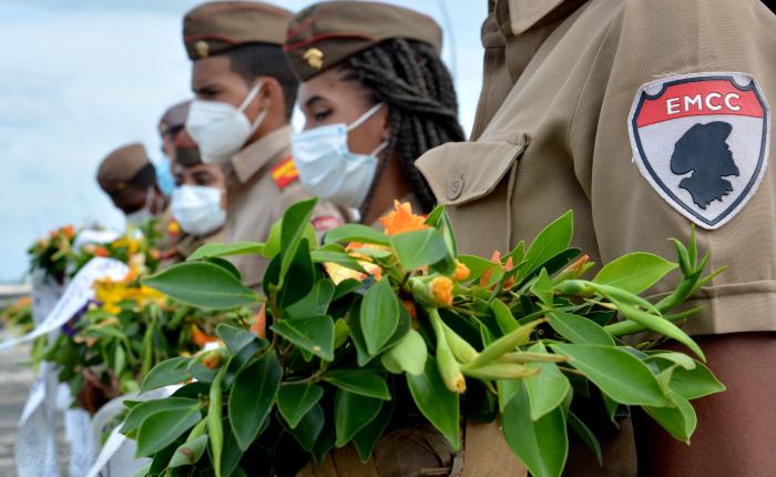 En la capital, en representación del pueblo cubano, miembros de las Fuerzas Armadas Revolucionarias, del Ministerio del Interior y de las organizaciones de masas del país, así como trabajadores y estudiantes de diferentes centros, acudieron este jueves al emblemático malecón habanero, con esas mismas flores que sobre el mar nos recuerdan el amor del pueblo a uno de sus héroes más carismáticos.