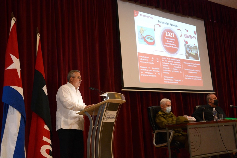 Resaltó la importancia de fomentar el uso de las fuentes renovables de energía en las industrias y la población a través de paneles y bombas fotovoltaicas para contribuir al cambio de la matriz energética de Cuba. En las conclusiones del encuentro, Marrero Cruz hizo un reconocimiento al trabajo del Mindus en 2021, quienes se enfrentaron a diario con las limitaciones de falta de materias primas, partes y piezas en sus actividades.
