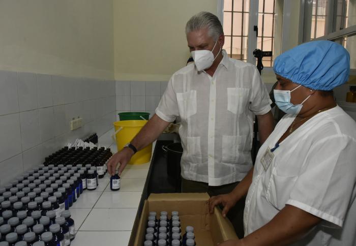 Como parte del Parque Temático, el mandatario recorrió el Proyecto Agrocel, que tiene como centro el dispensario farmacéutico Medilab, que produce unos 12 000 frascos mensuales de medicamentos a partir de productos naturales.